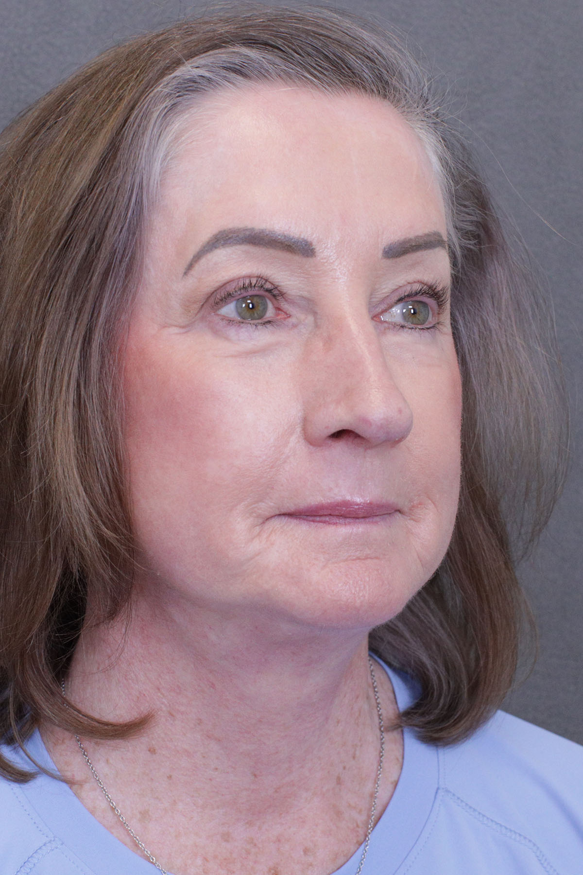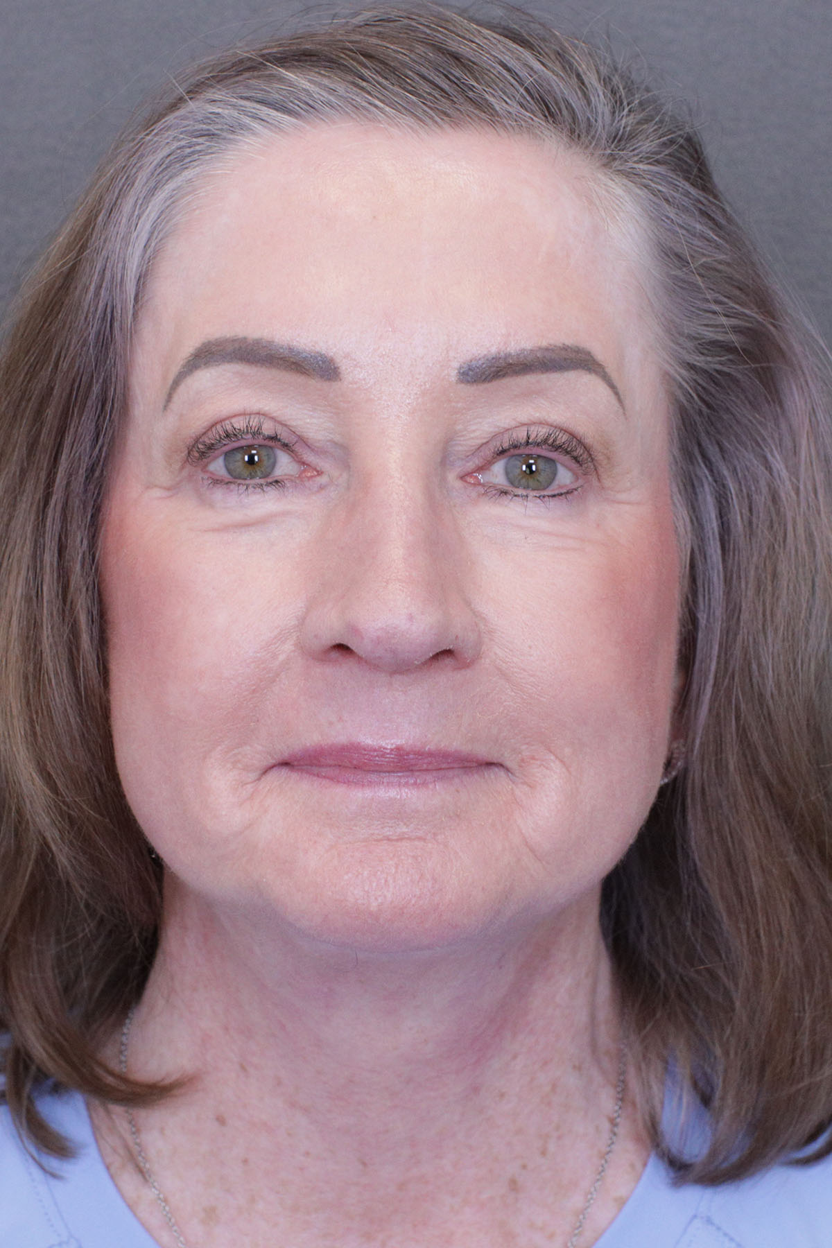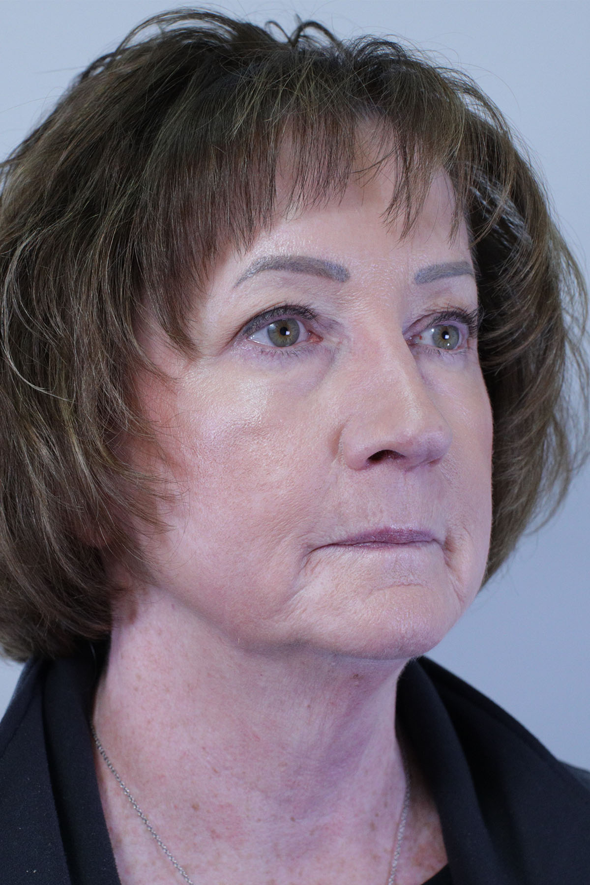 This very pleasant patient underwent a face lift, lateral brow lift and upper blepharoplasty surgery.